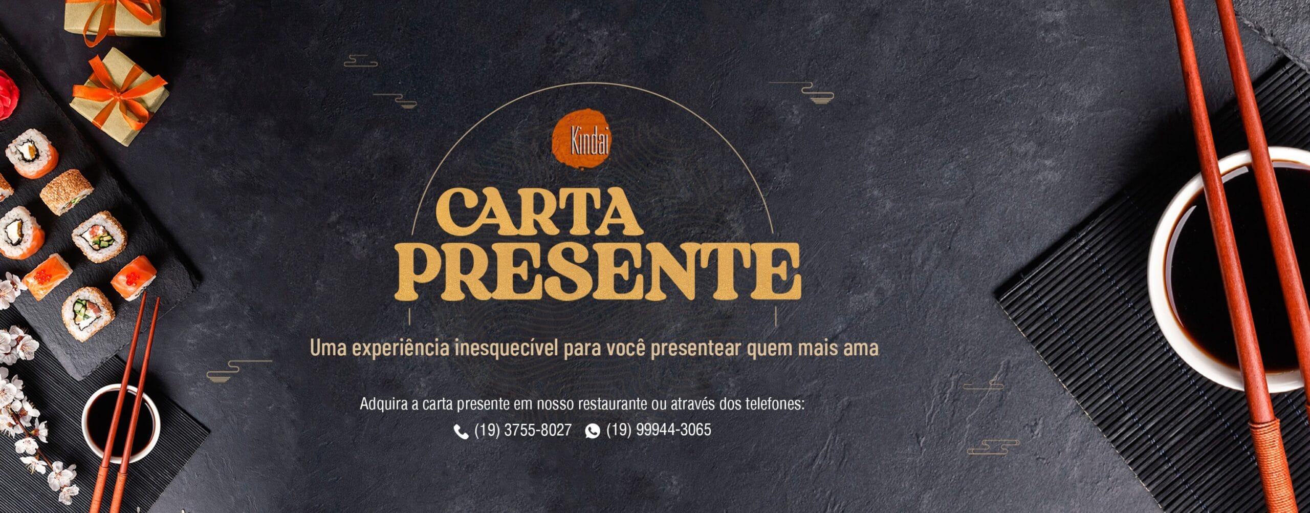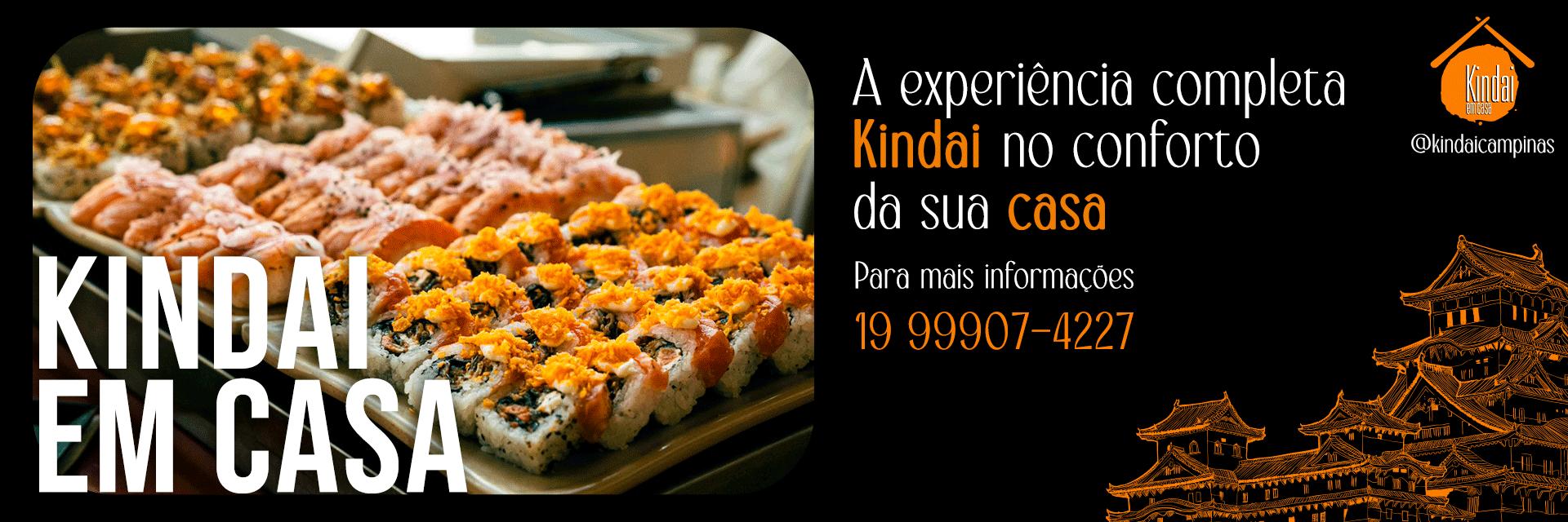 É o nosso serviço para eventos externos. Você pode contratar o Kindai para o seu evento em casa ou em outro espaço e levamos toda a experiência da melhor comida japonesa de Campinas, incluindo a presença do sushiman. Entre em contato para mais informações e agendamentos. Para informações e orçamentos, entre em contato através 19 99907-4227.